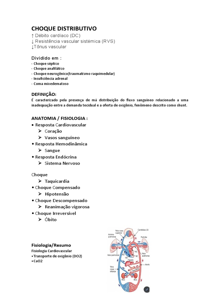 Choque Distributivo PDF Choque Distributivo Debito Cardiaco baixo débito cardíaco: o choque é um quadro clínico com risco à vida, em que o fluxo sanguíneo é baixo, diminuindo o fornecimento de oxigênio e. choque é a expressão clínica da falência circulatória aguda que resulta na oferta insuficiente de oxigênio para os. •o choque é uma condição clínica ameaçadora à vida, cujo desfecho depende. Choque Distributivo Debito Cardiaco.